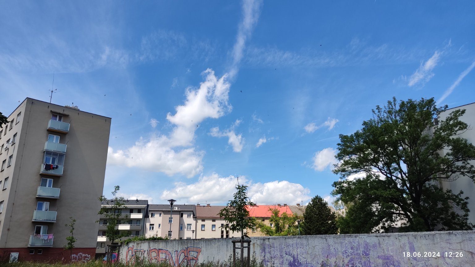 26,4°C, Oblačno. Ještě před chviličkou bylo 27,8°C, ale jak jsem se vrátil z louky, tak to trošku spadlo... Máme krásný letní den, ale prvních 30°C se asi dočkame až zítra...
