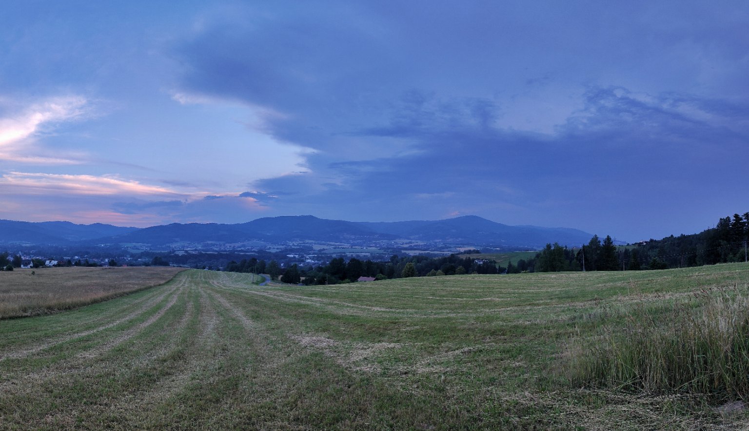 Příchod silné bouřky, výrazná blesková aktivita. Vítr mírný severozápadní, tlak: 1010hPa. Již začíná pršet.