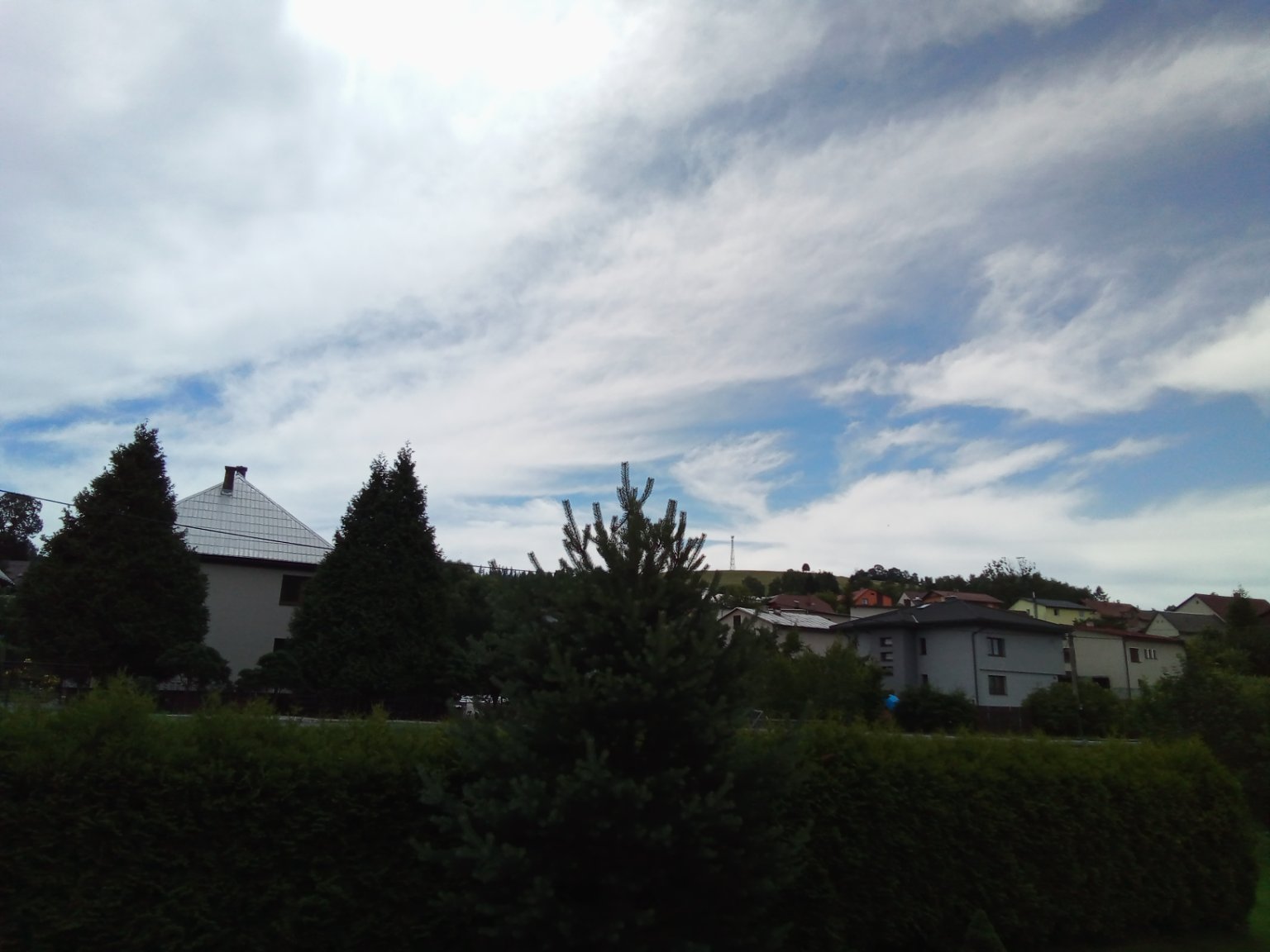 20,8°C, Oblačno. Sem tam se u cesty povalujou popadané stromy.