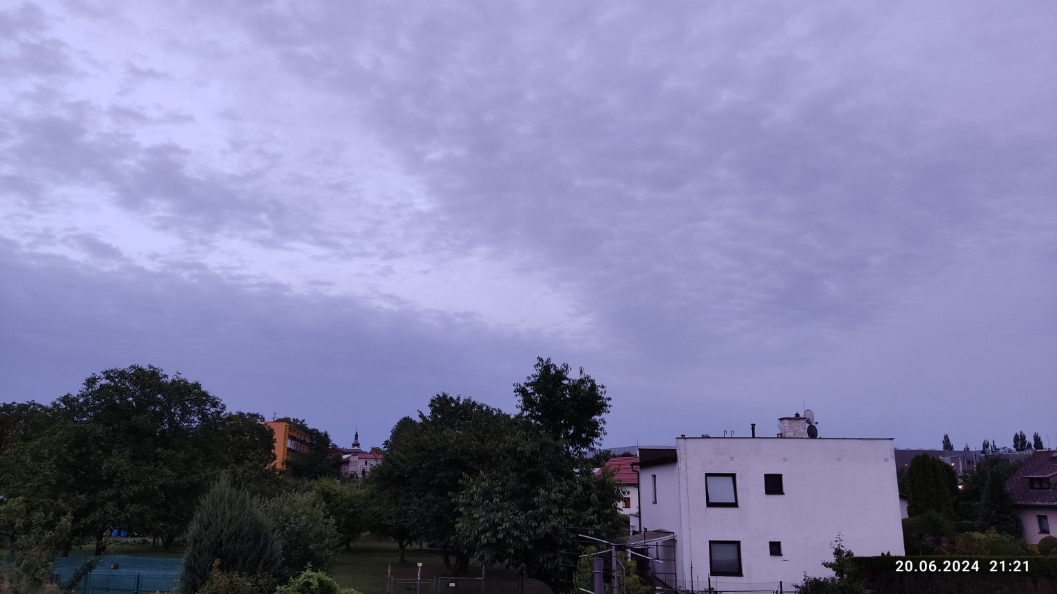 15,6°C, Zataženo až oblačno. Dneska máme nejdelši den roku a ještě k tomu měsic svítí víc než obvykle.