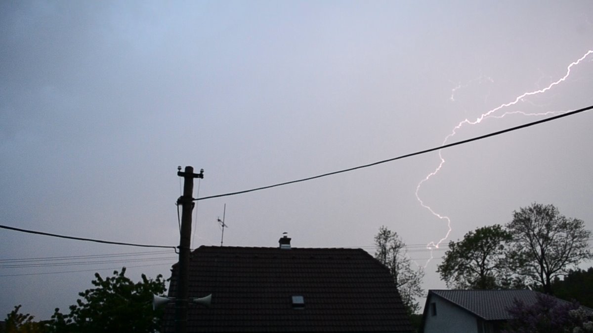 Tlak 1015,vlhkost 96% a zůstatek krup na střeše