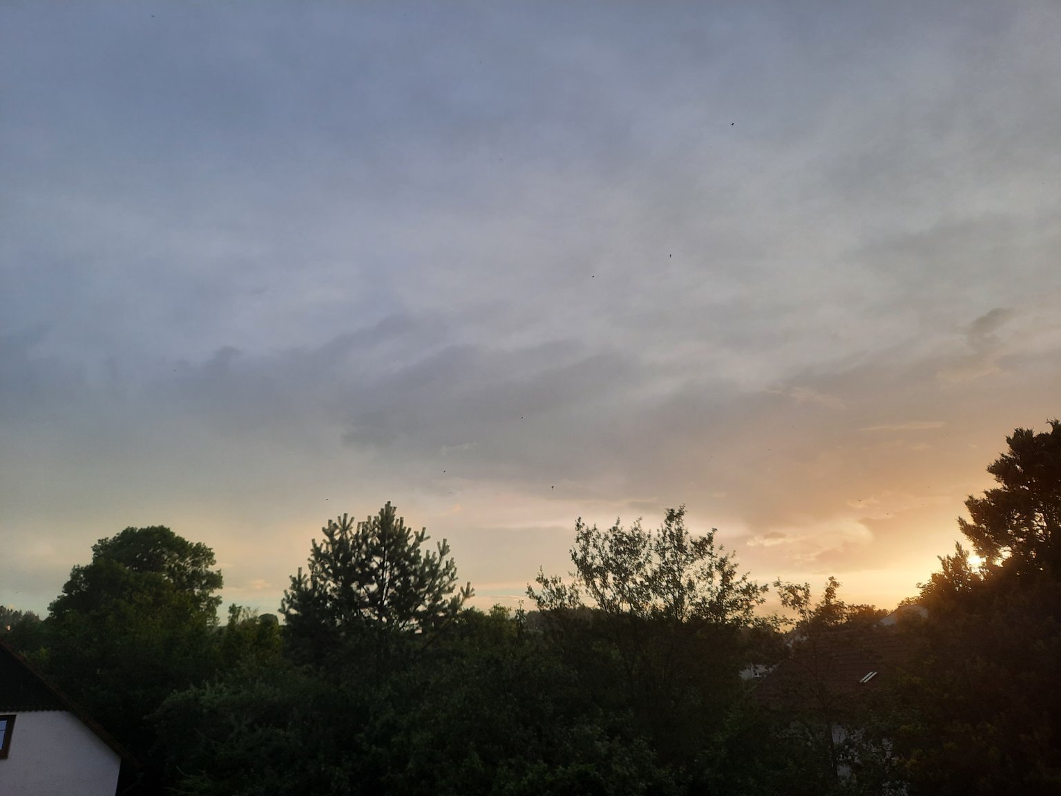 Od JV začíně foukat a v dálce hřmí. na Z svítí