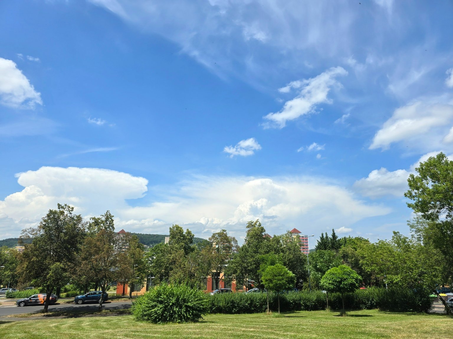 26,3°C, Oblačno až zataženo. Oblačnost se konečně protrhává, dusno jak v pradelně, z toho by ty bouřky snad mohly vzniknout...