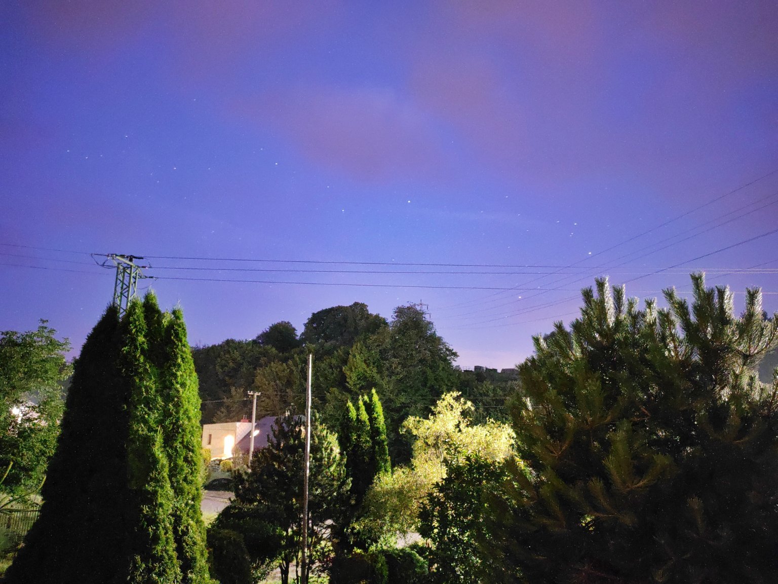 Patrná jsou noční svítící oblaka (NLC) nad severním obzorem