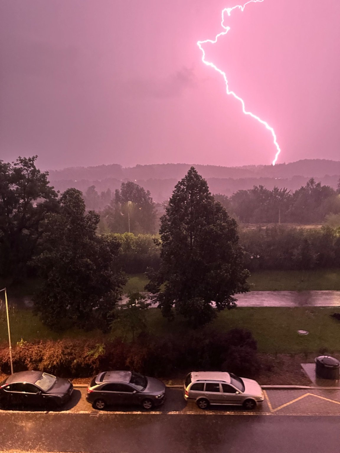 17,1°C, Velmi slaba bouřka. Už to odchází, kroupy už nakonec nebyly, ale zatim napršelo 46,7 mm sražek a potoky na to začinaji reagovat...