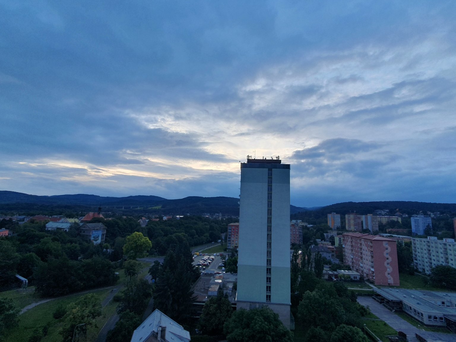 14,7°C, Oblačno až zataženo. Miluju jak zapadající slunko vždycky nasvítí ten kopeček.