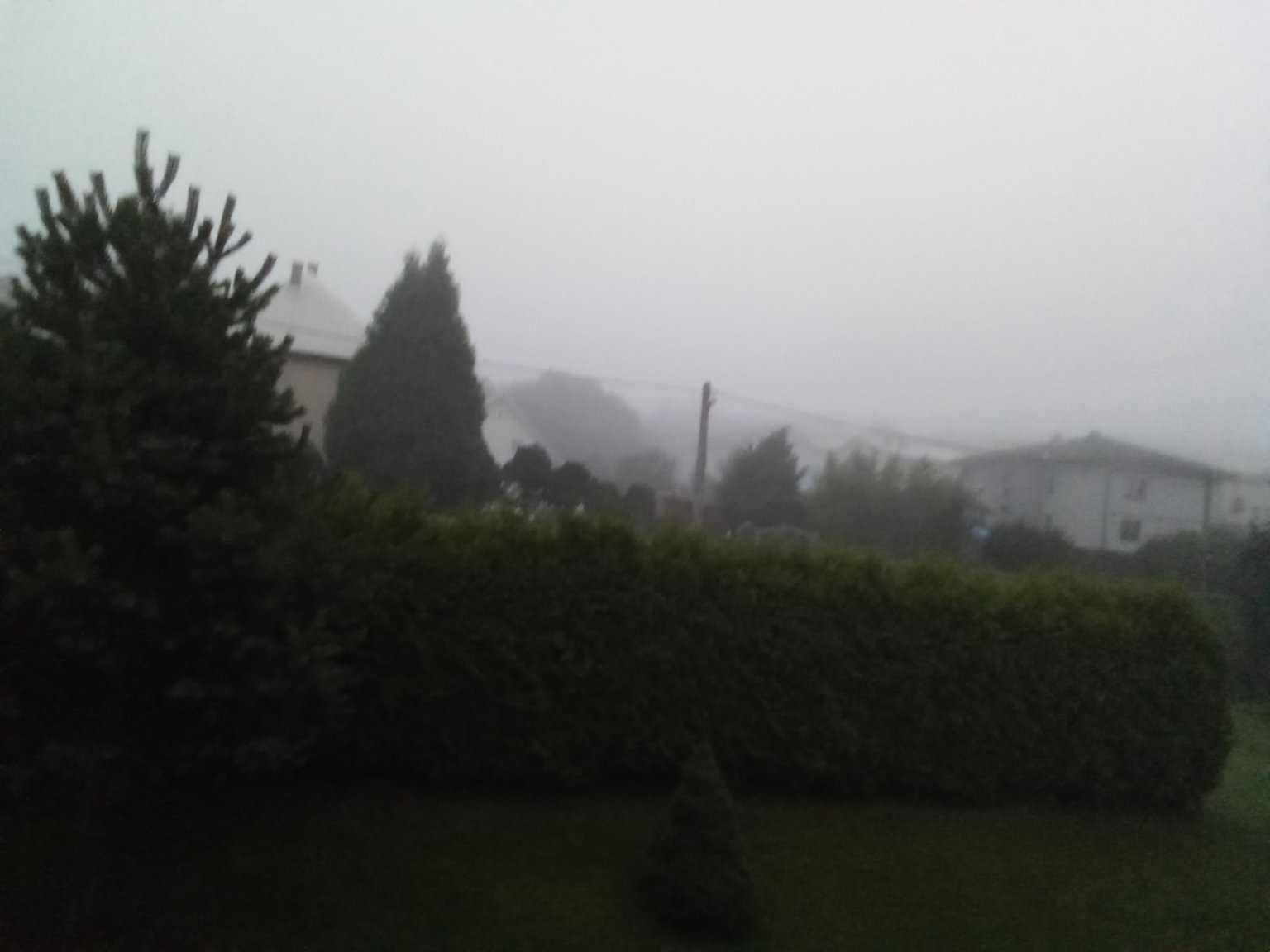 13,8°C, Zanedbatelné až velmi slabé mrholení. Sem tam popadávají drobné kapičky.