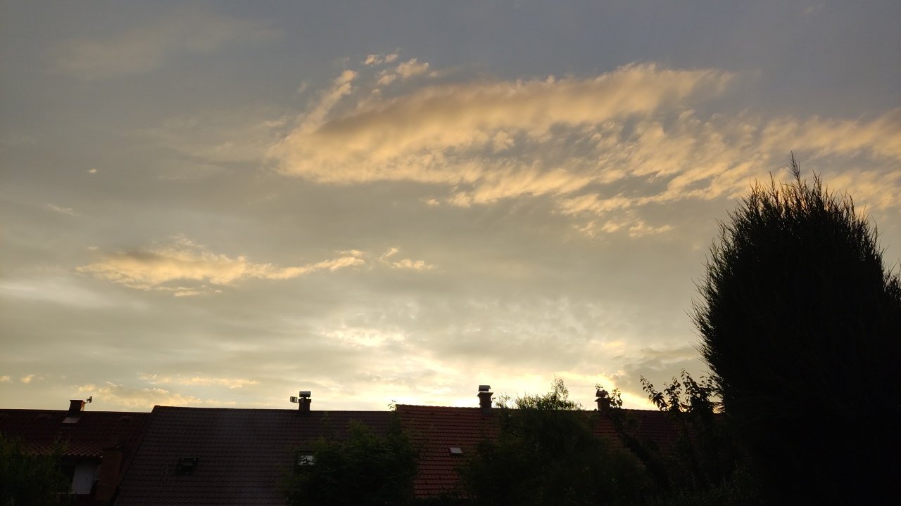 Aktuálně převažuje většinou zataženo, mírný až silný déšť a slabá bouřka, fouká většinou slabý vítr