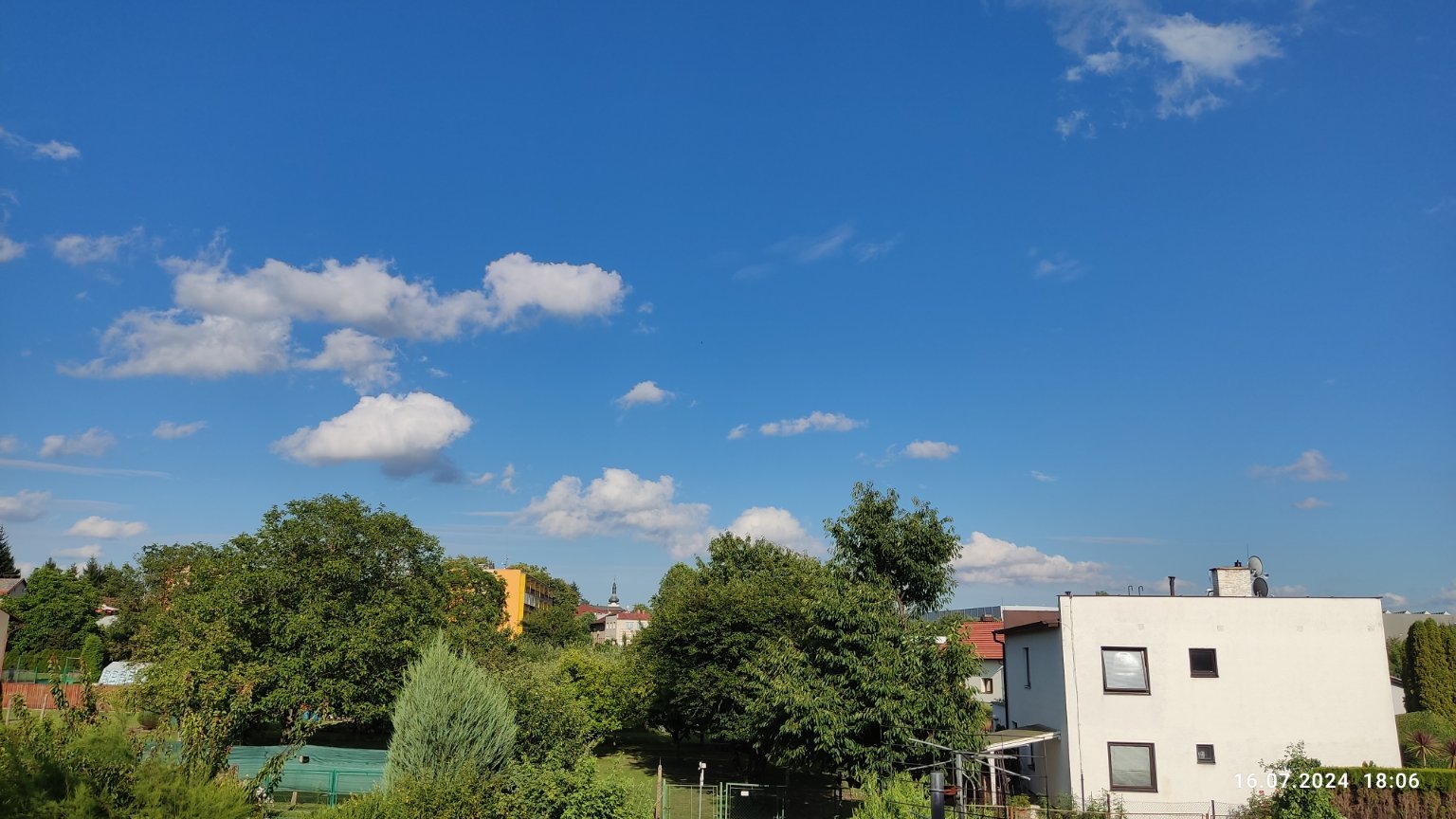 29,3°C, Polojasno až skoro jasno. Nějaka ta konvekce ještě je, ale bouřek už je konec.