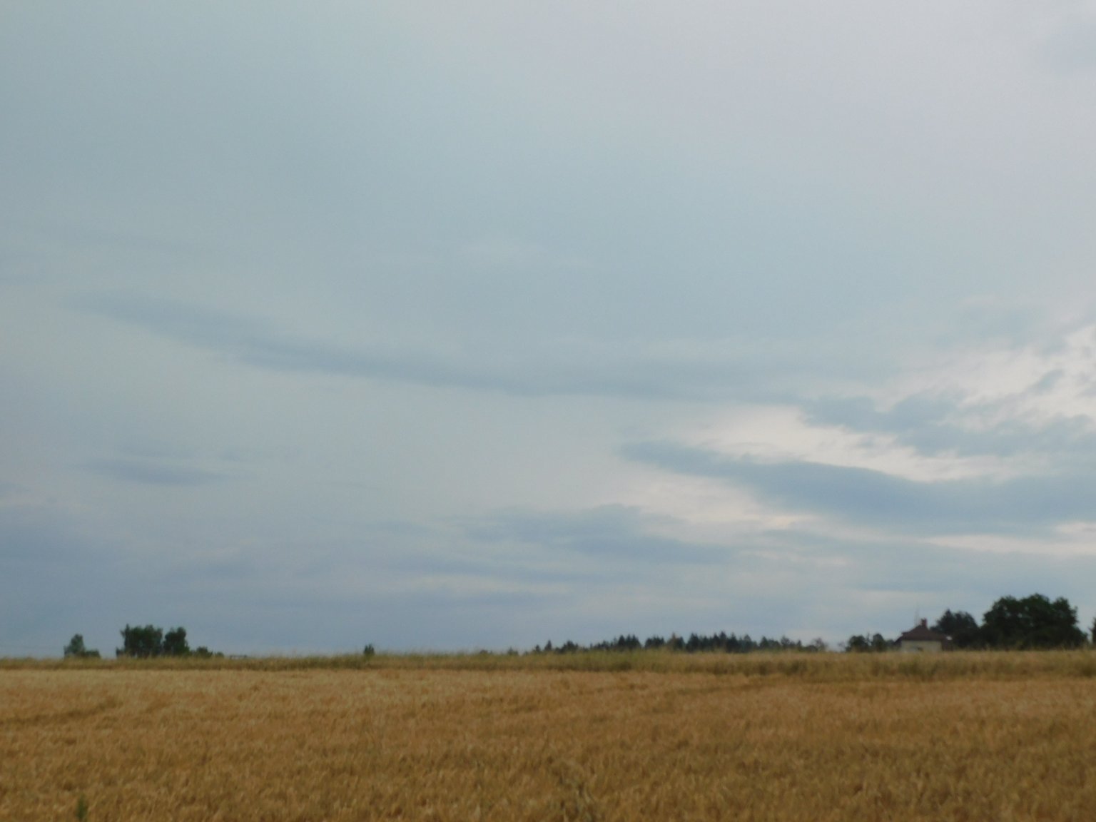 Bouřka, vydatný déšť ustává, většinou jen slabý SZ. vítr, tlak 1014 hPa.