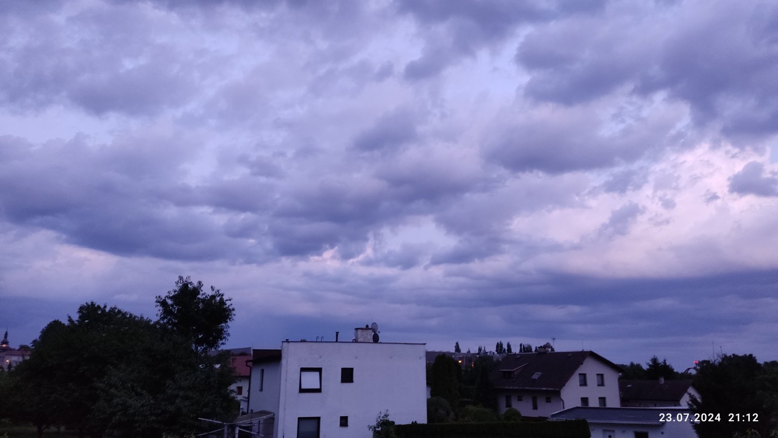 Skoro jasno. Většinou bezvětří. Vlhkost 61%. Max T dnes 29,5°C, Most-Vtelno max T 28,6°C