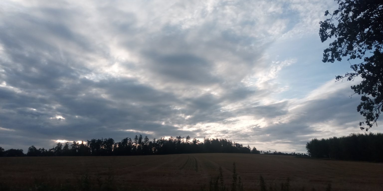 Oblačno až skoro zataženo. Slabý vítr, tlak 1013 hPa, vlhkost 45%.