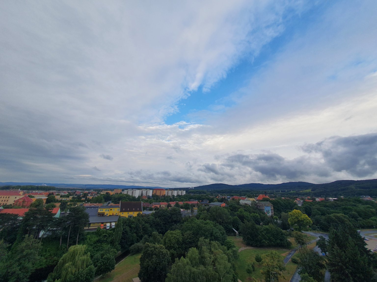 Zataženo po dešti (5,5 mm), slabý SZ vítr, tlak 1014 hPa.
