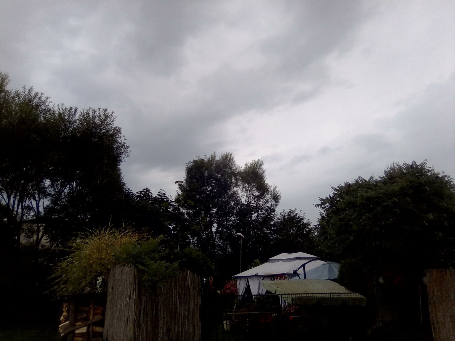 Zamračené, mierny dážď, búrka