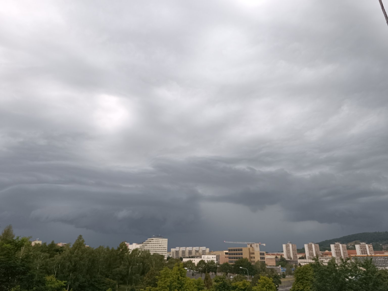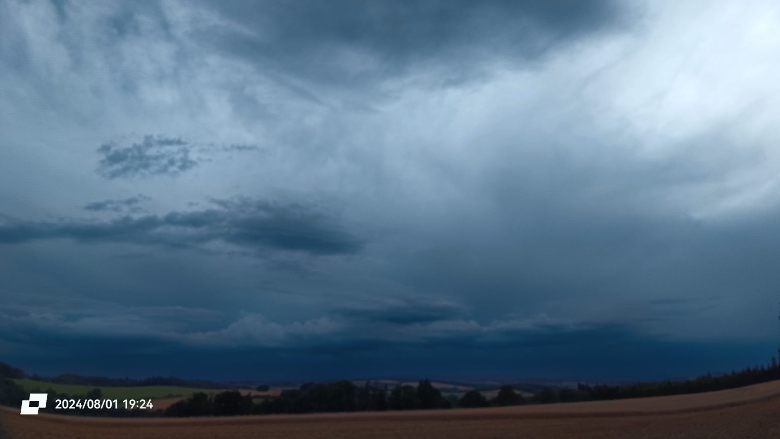 Po slunečném dni se rychle zatáhlo zprvu vysokou oblačností, bouřka v dáli. Klidno