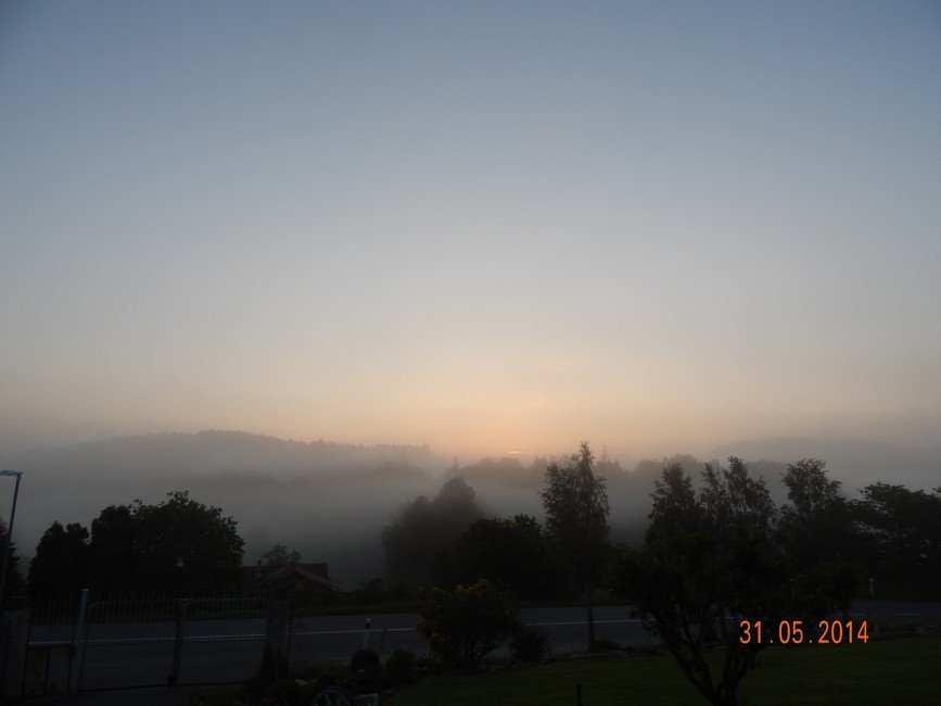 Tlak 1022,7 hPa,vlhkost 92%RH,srážky 0,mm/24 hod,vítr 1-5/km/h SW,dohlednost 8 km.