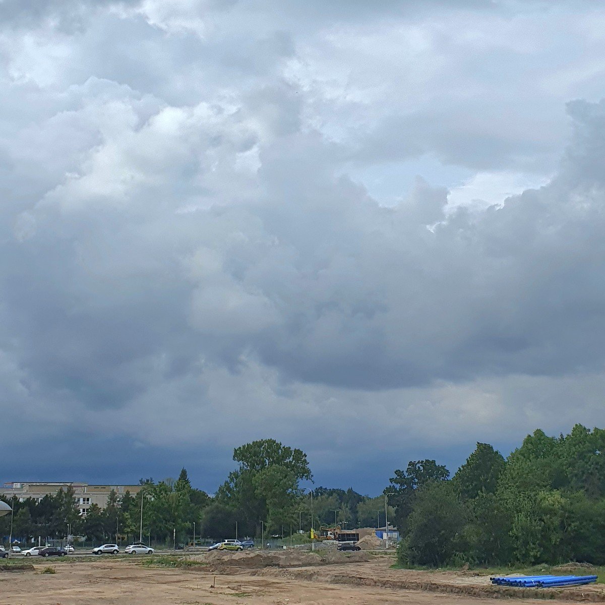 Od západu se blíží bouřka s poměrně výrazným shelfcloudem, tak snad pořádně zaprší. Vane mírný severní vítr, tlak: 1005hPa.
