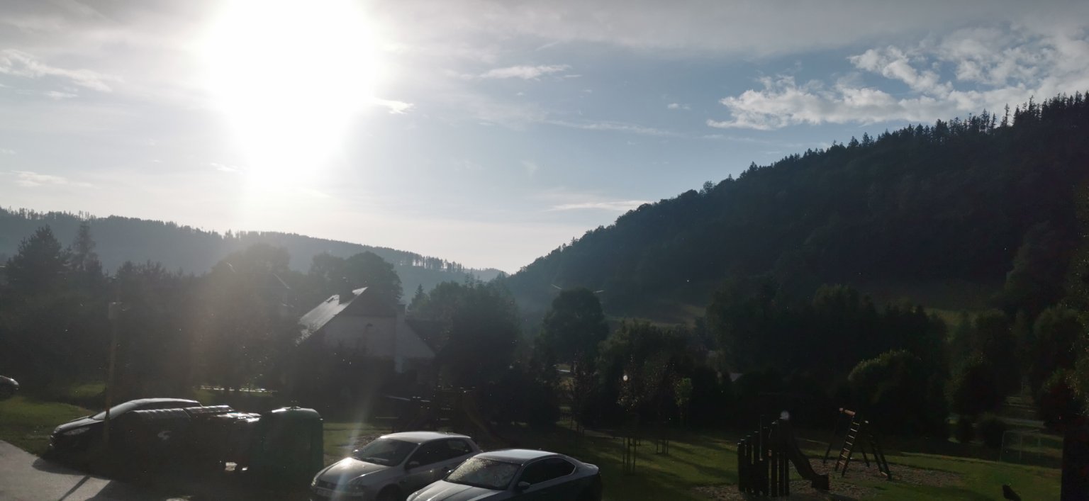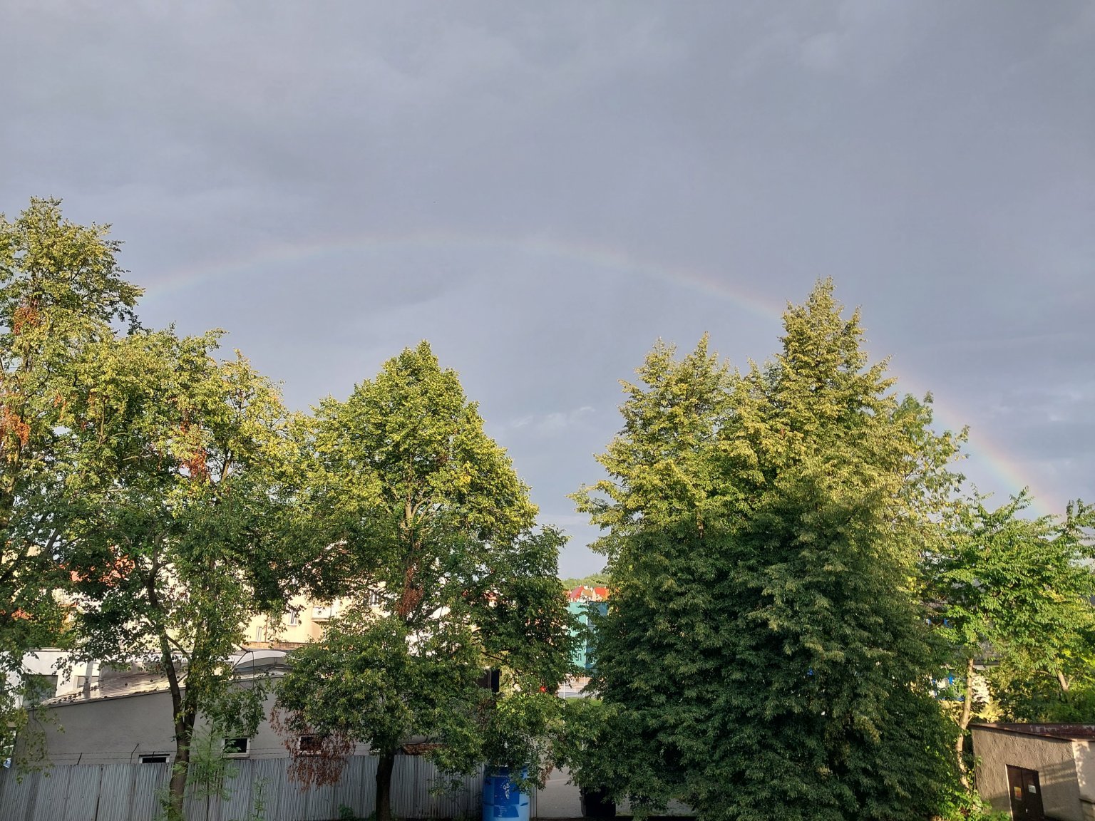 ještě trochu krápe, ale duha se objevila. tlak 1020 hPa, vítr Z 2,5 km/hod ten to snad rozežene.