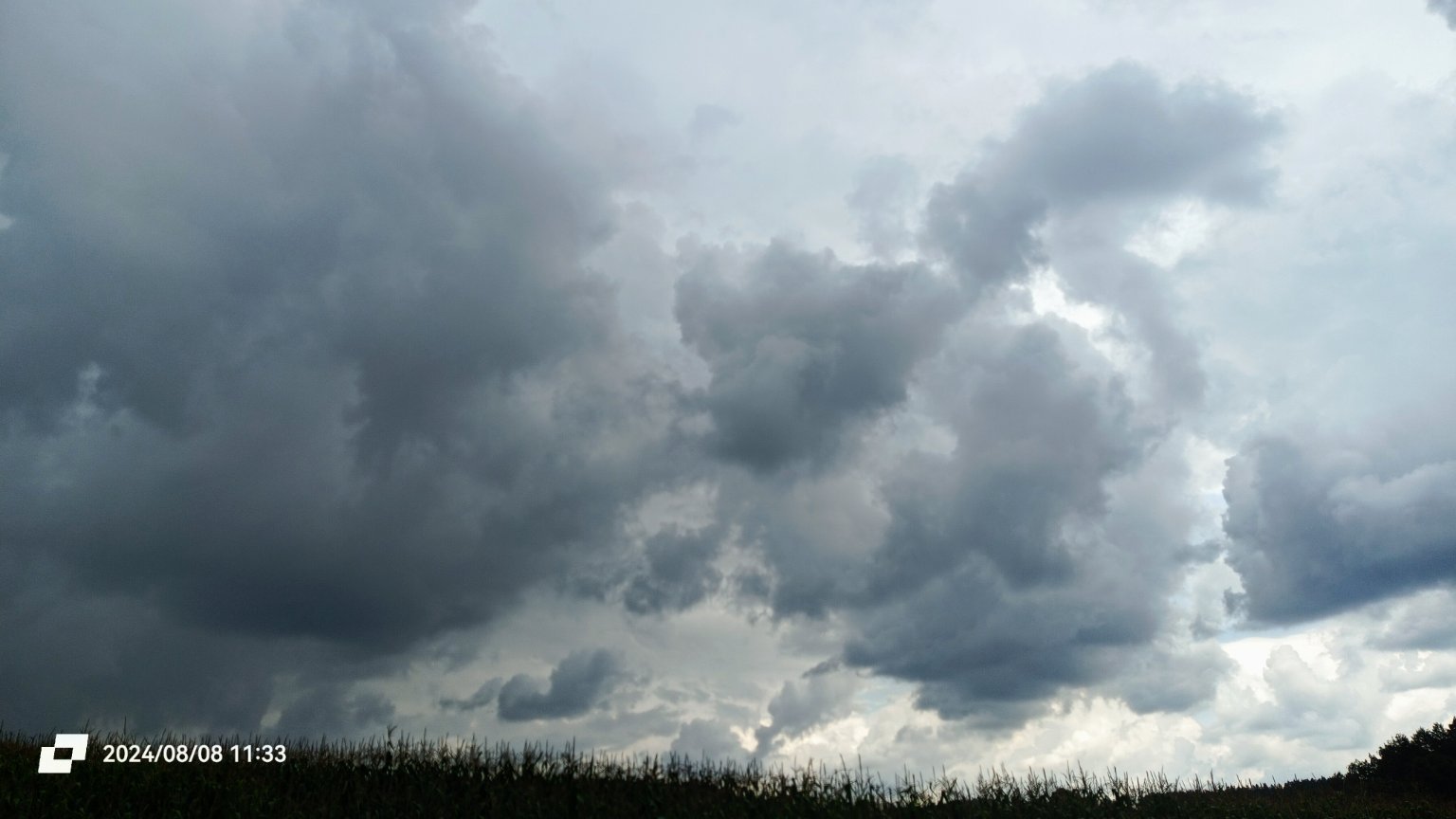 Vydatný déšť a bouřka, 20 minut nešel internet, kanály nestíhají, zatopená silnice, popadané popelnice