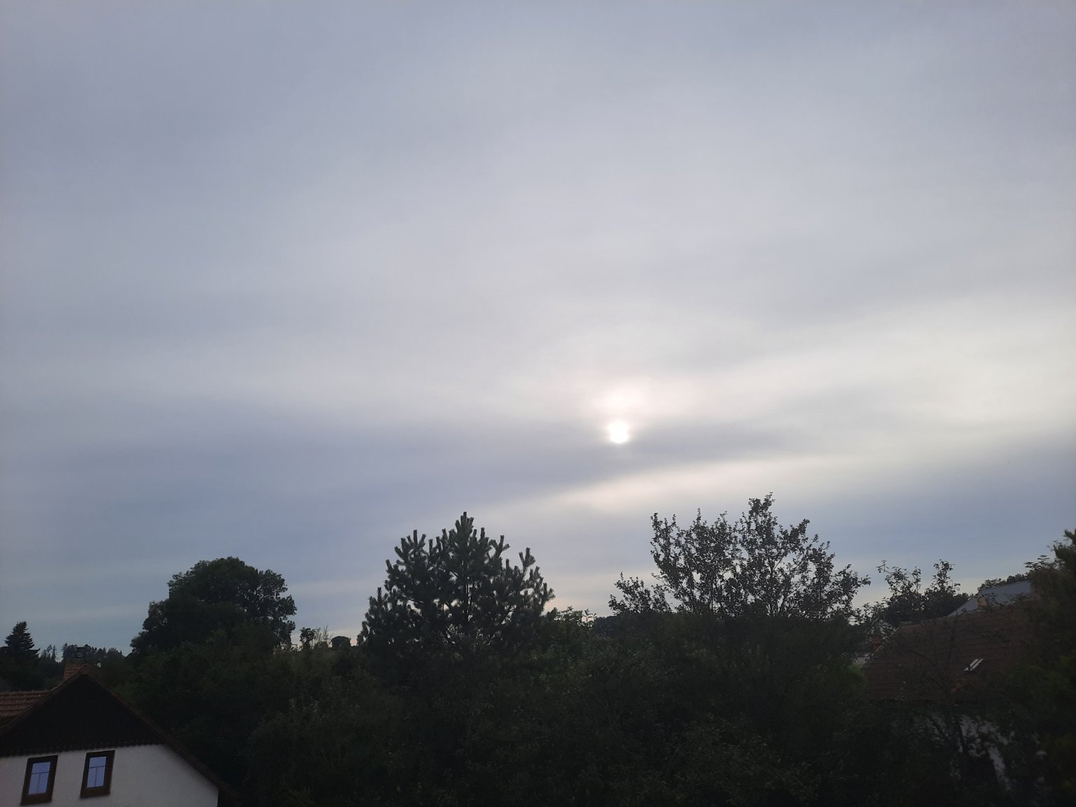 Je skoro zataženo a vane slabý proměnlivý vítr.