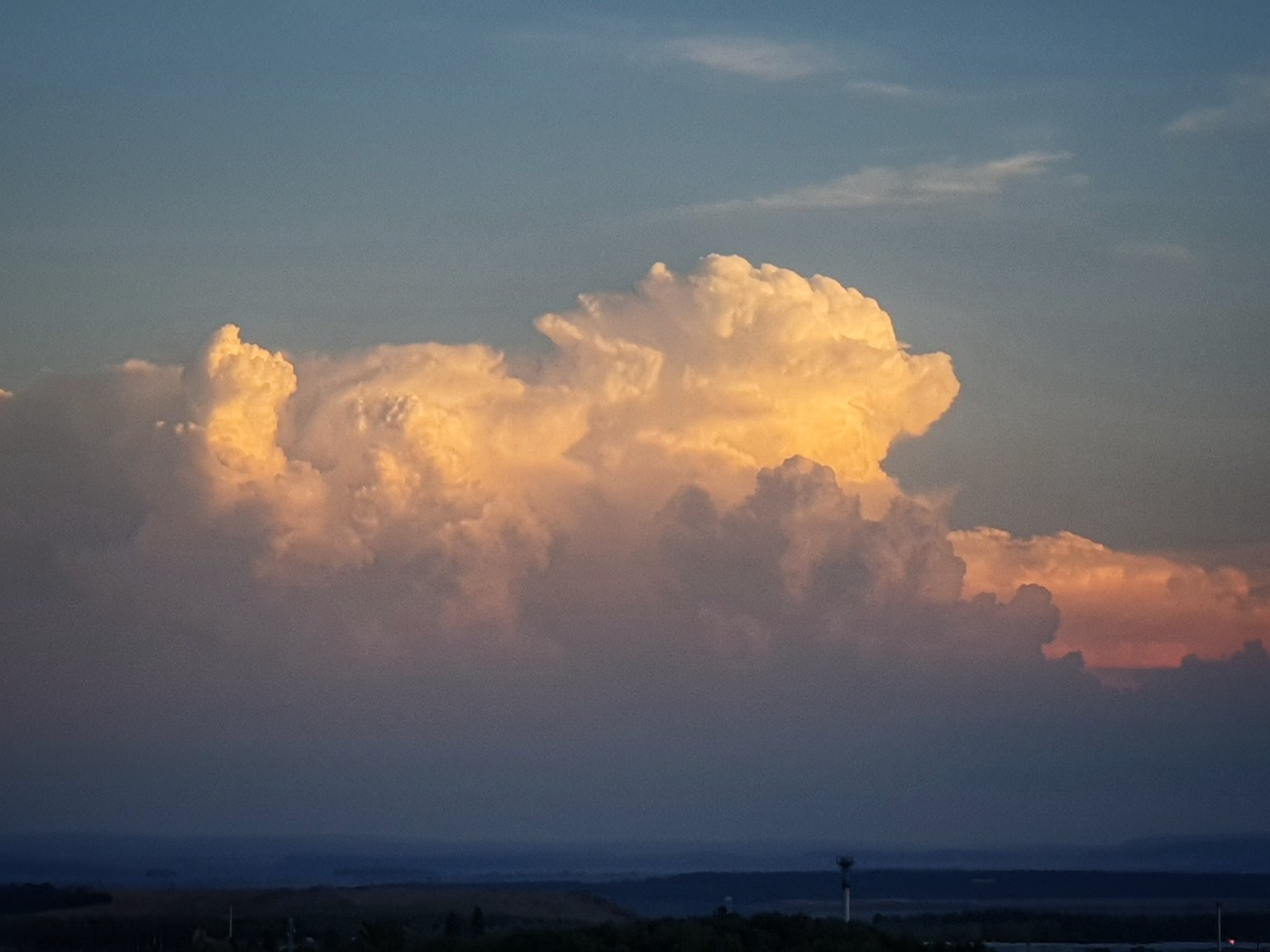 To šedé aktuální bouřka. Pak modrá obloha s měsícem a poté a teď nevím jak se tento typ mraku nazývá. Foceno směr jih.