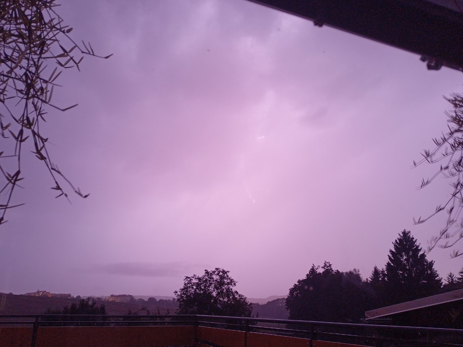 Rosný bod 17,5°C, vlhkost 86 %. Tlak 1013,88 hPa, vítr slabý J, před chvílí nárazovitý, nejvyšší náraz 7,0 m/s. Kolem dokola stroboskop a pomalu začíná pršet
