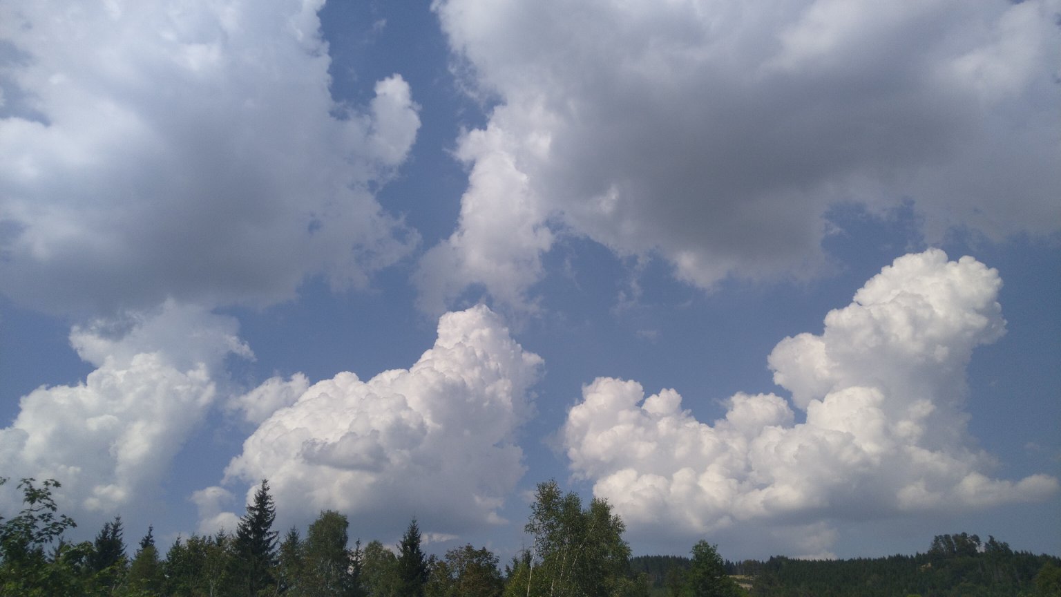 Slunečno a horko, v okolí se však vytváří i kupovitá oblačnost, která přináší slabé stracionarní bouřky. Vane slabý severozápadní vítr, tlak: 1015hPa.