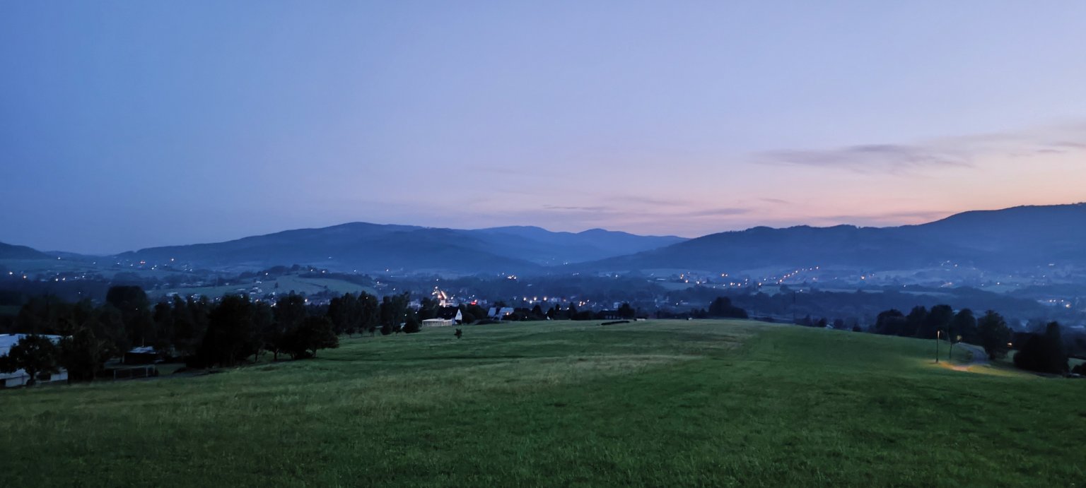 19,5°C, Jasno až skoro jasno. Tu bude 31.8 Radvanovský táborák, přimo za našim barakem.🙂
