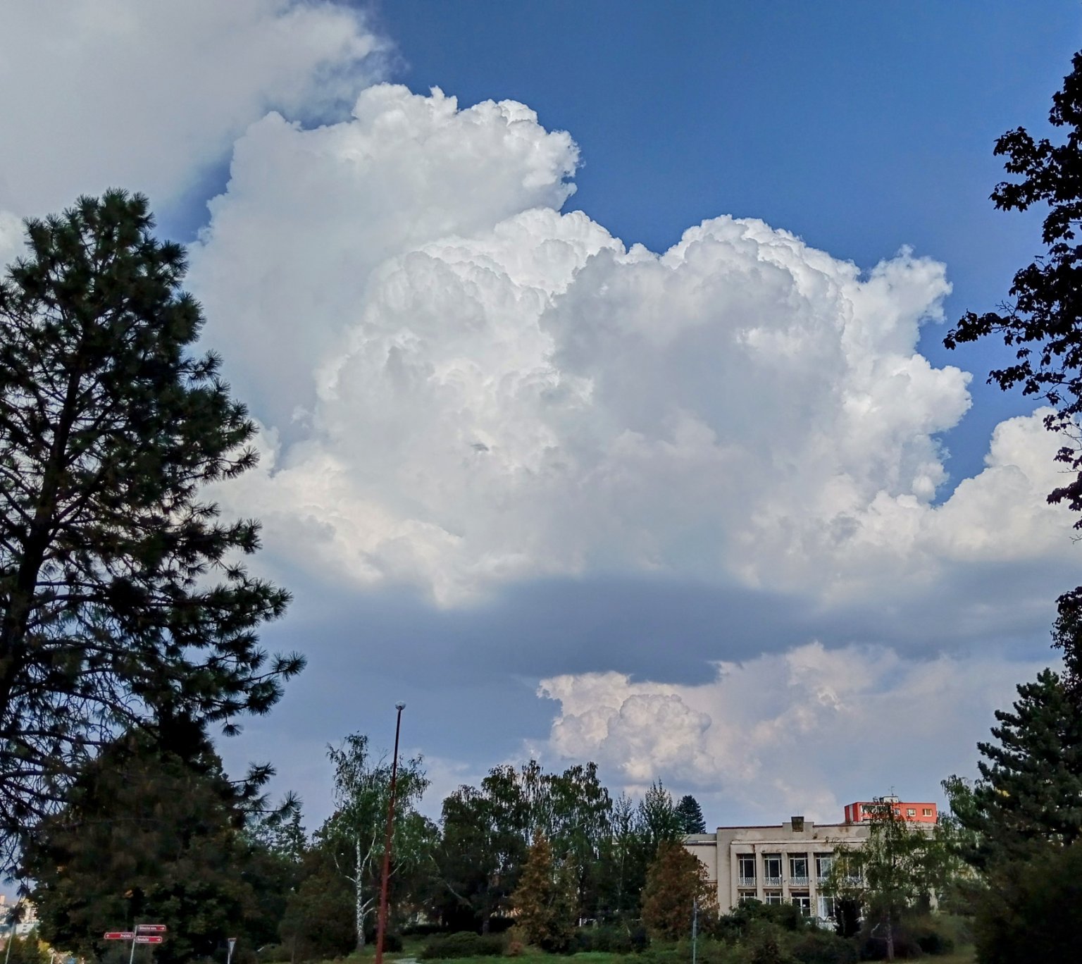 Převážně vysoká oblačnost, částečně i trochu kupovité. Vítr okolo 1 m/s proměnlivý. Vlhkost 45%