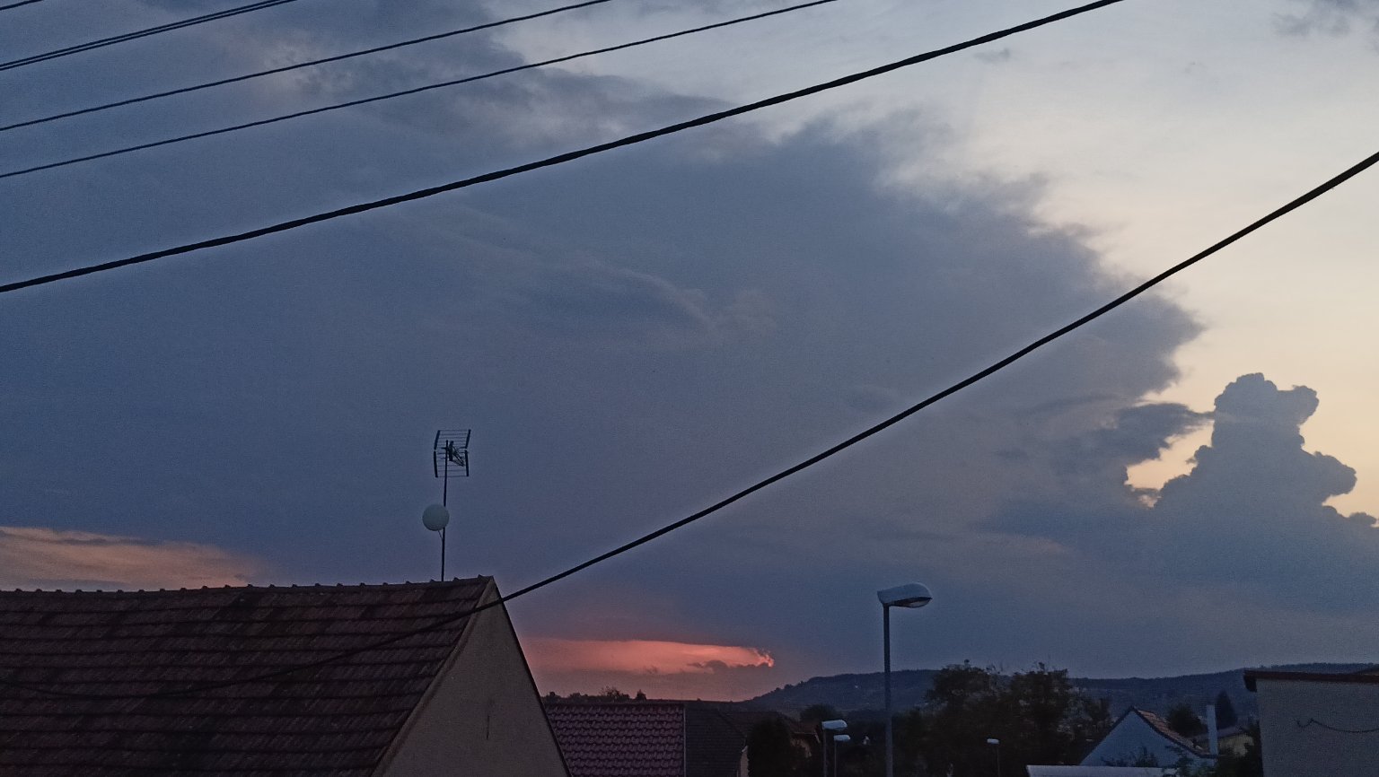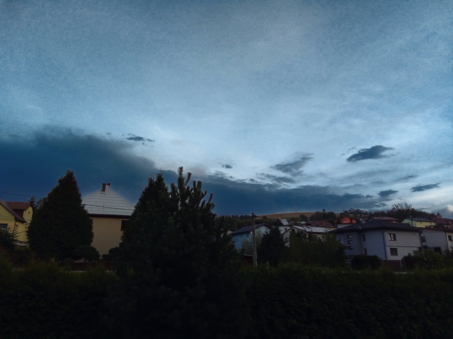 Oblačno, pohled na bouřku u Velké Bíteše.