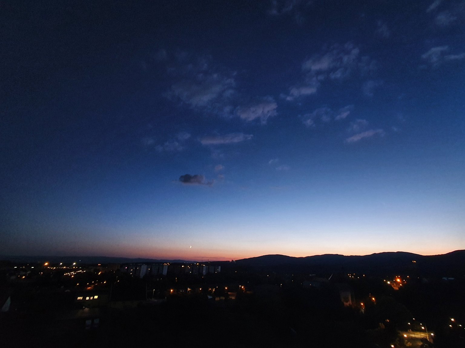 20,8°C, Skoro jasno. Fajna noc, zítra zřejmě bude poslední tropický den roku, poté má dorazit velmi výrazné ochlazení, maxima by mohly klesnout i na jen 9°C a je možne že se poté ještě víc ochladí!!! To už by mohl na horách být první sníh!!! Ale je to ještě daleko, tak nepředbihejme...
