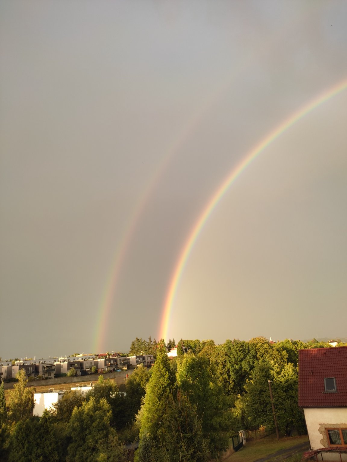 Vlhkost: 94%, Tlak 1004 hPa, skoro zataženo, ufo mrak s duhou, za dnešek: 21.3mm