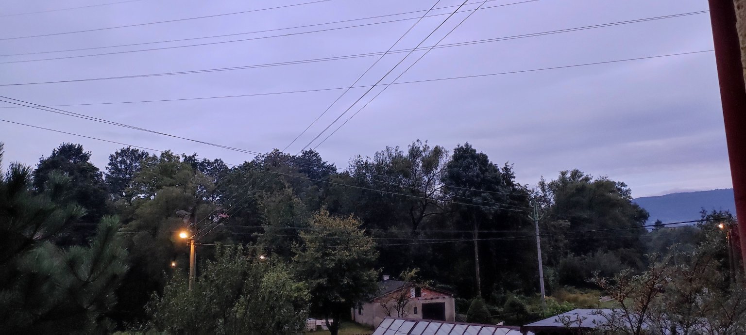 14,3°C, Zataženo. Už neprši, zítra jedu se školou do Řeky, snad výjimečně zrovna nebude pršet...