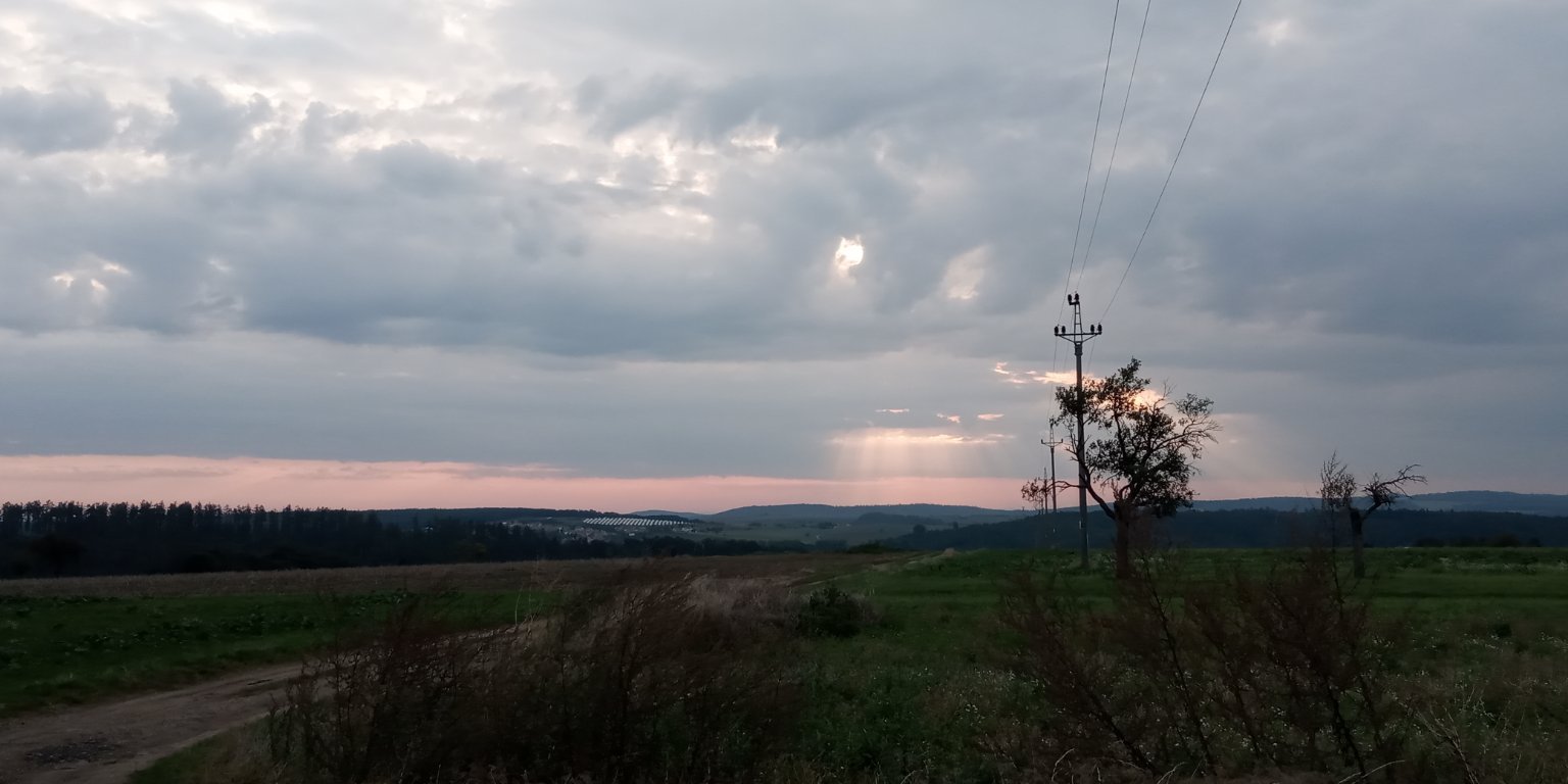 Skoro jasno, zatím klidno, tlak 1020 hPa.