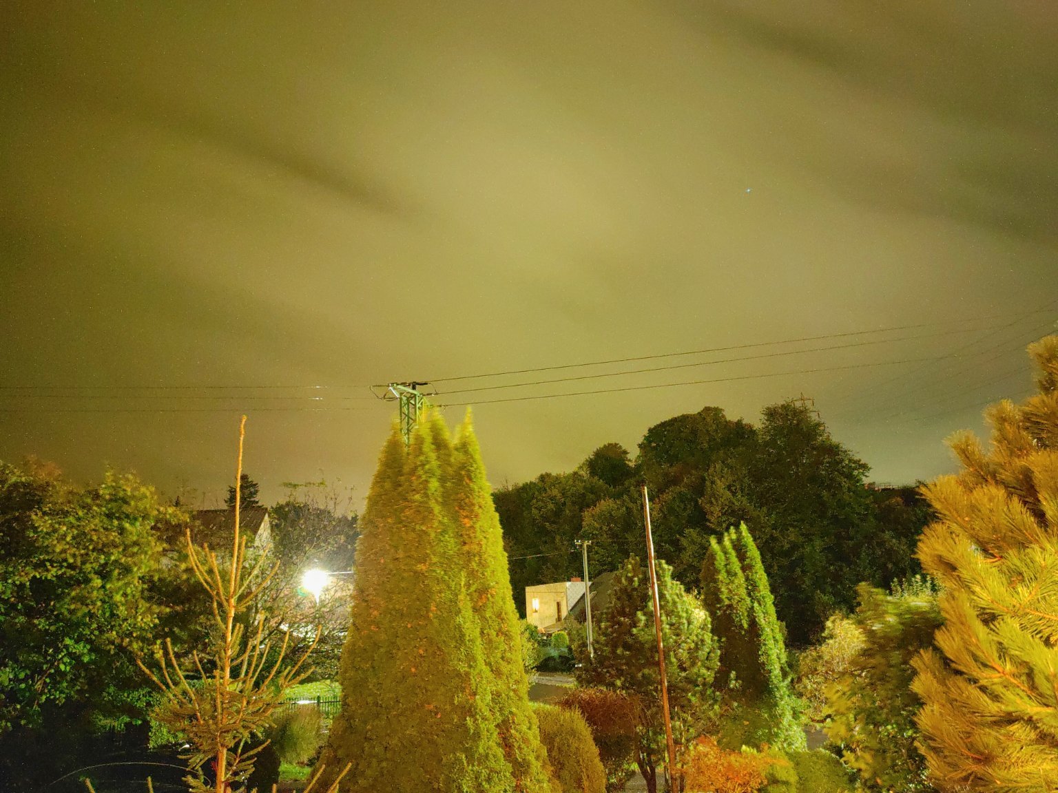9°C, Mírné mrholení. Už je taká tma že bylo třeba použit dlouhou expozici. XD