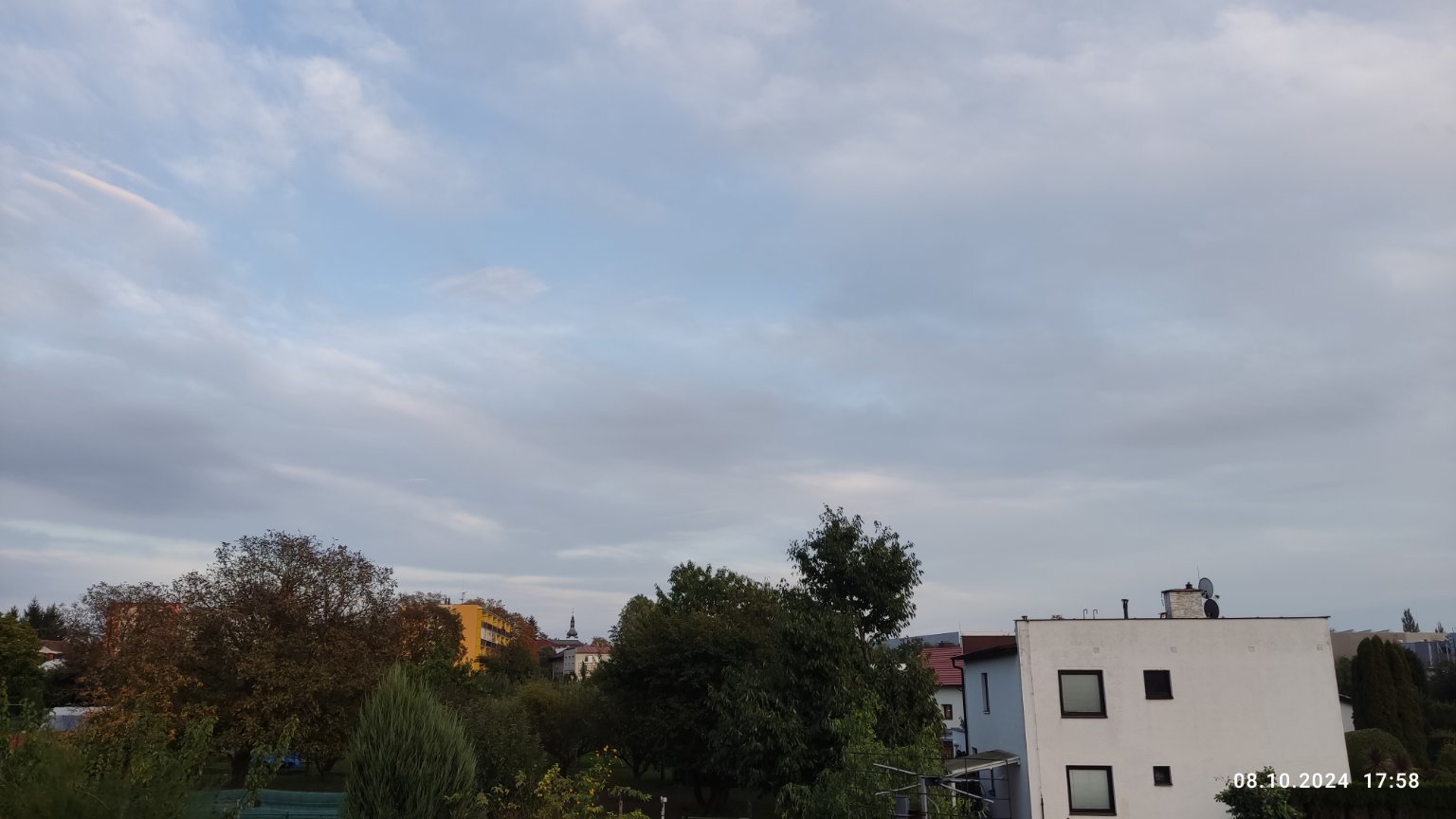 Po ranní polojasné obloze se nasunula od JV. nízká oblačnost, která se později odpoledne protrhala na stav viz.foto.