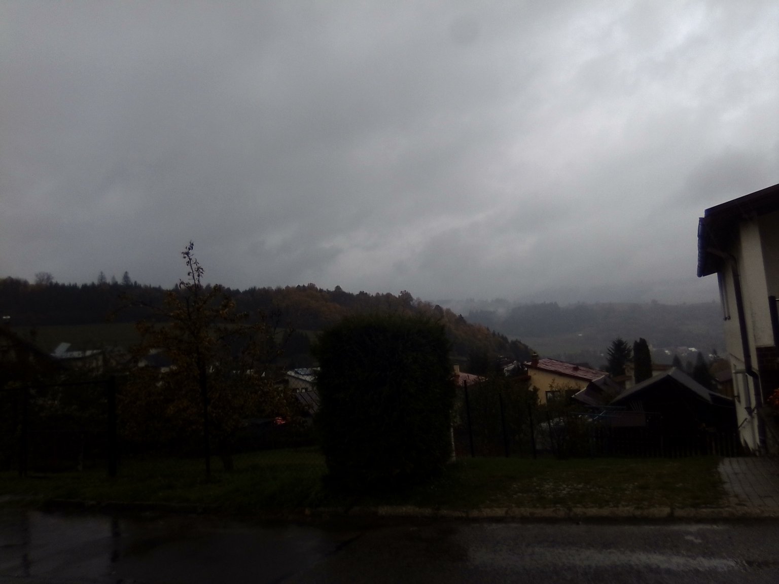 11°C, Zataženo až oblačno. Zpoza mraků začina vykukovat slunce, zatím se žadna vichřice nekoná... Asi zase propadák... Bliži se sem intenzivní přehaňka, ale zřejmě nás jižně obejde...