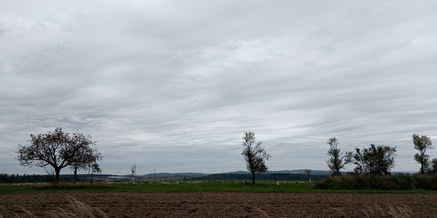 Tlak 1024 hPa, vitr SZ 14km/hod,