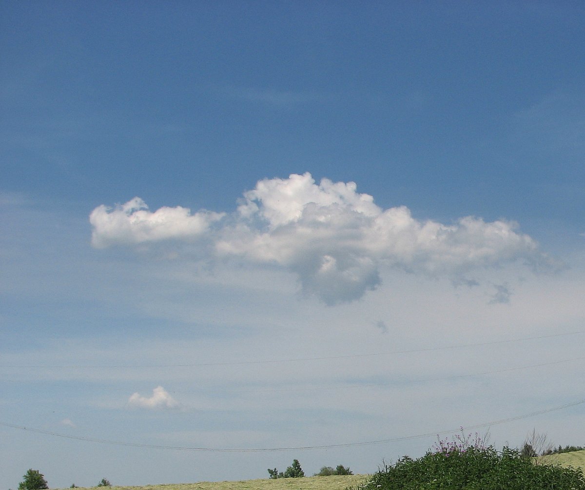 Pohřmívá, ale bouřka jede jinam, pár velkých kapek spadlo. Vítr se utišil.