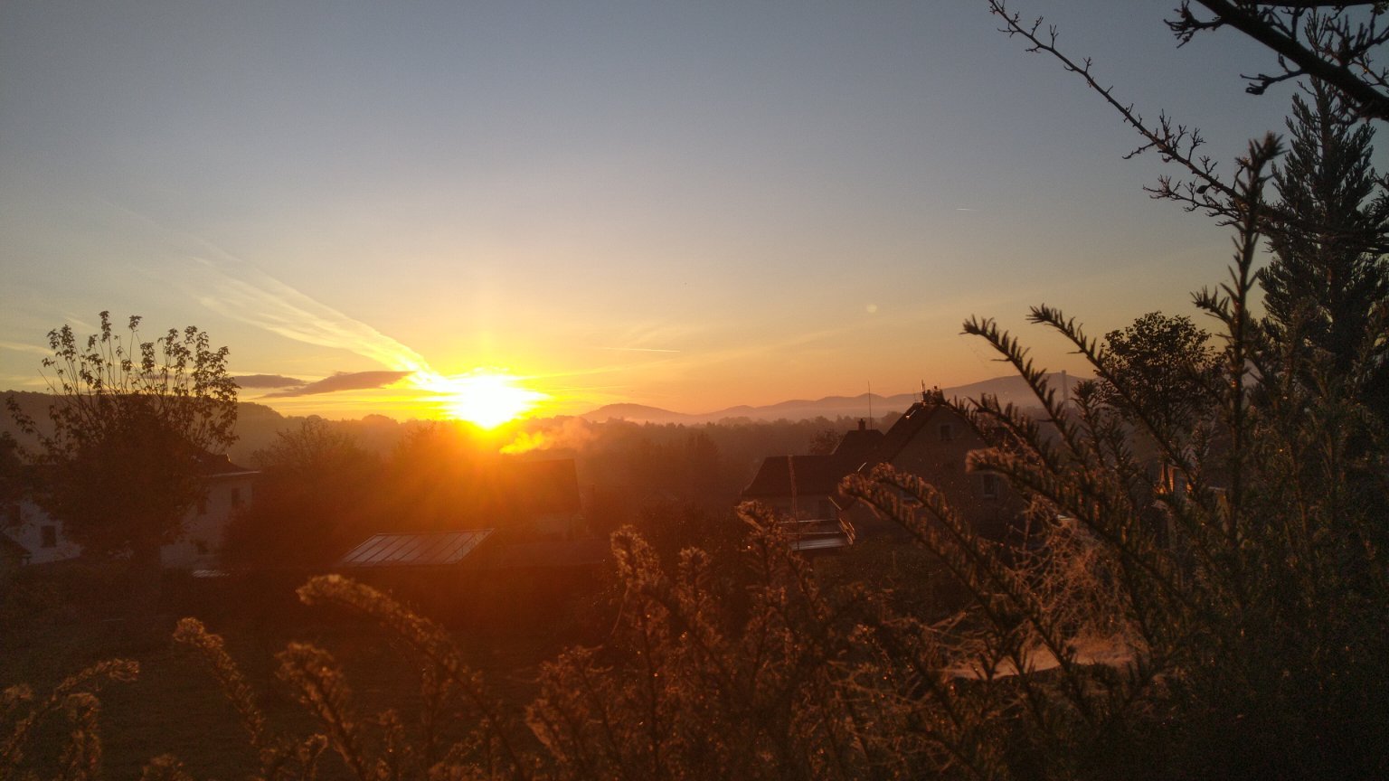-°C, Mírná mlha. Od Třince máme výraznou mlhu, v Jablunkově je hezky jasno.