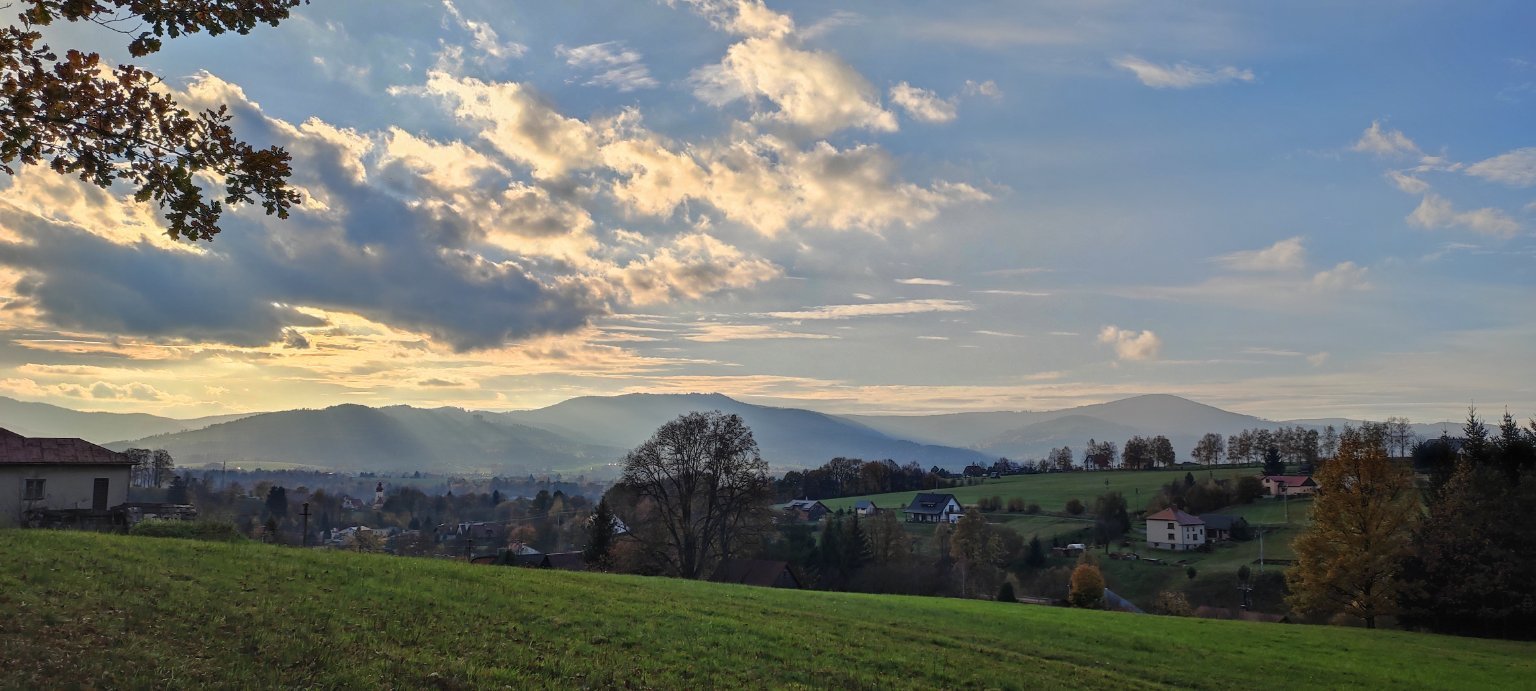 Polooblačno, slabý vítr, teplo; hezky Tyndallův jev