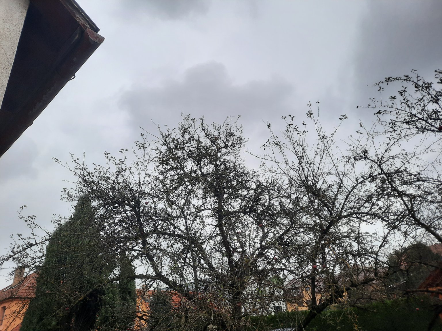 Oblačno až skoro zataženo. Mírný vítr, tlak 1028,6 hPa,