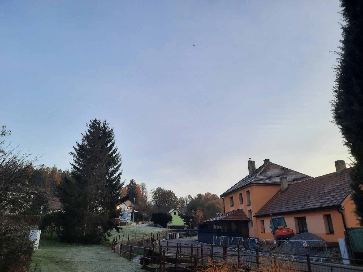 Skoro jasno, západní vánek, tlak 1028 hPa.