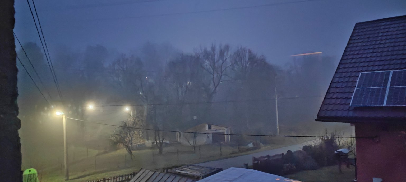-0,9°C, Velmi slabá mlha, Sníh: 0 cm. Už mrzne, tvoři se slabá „povrchová“ mlha.