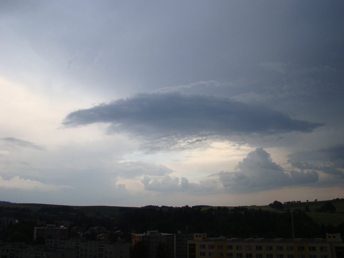 foto z 2014 06 11 v 21:42 zachycuje slunce, které mizí za střechou - zatím nespadla žádná kapka a fouká dosti chladný vítr