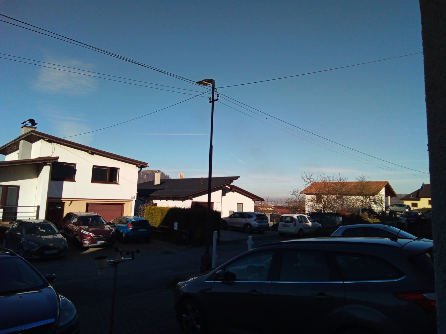 2,5°C, Zataženo, Sníh: 0 cm. Přimo ukázková inverze, na horách v okolí je jasno.