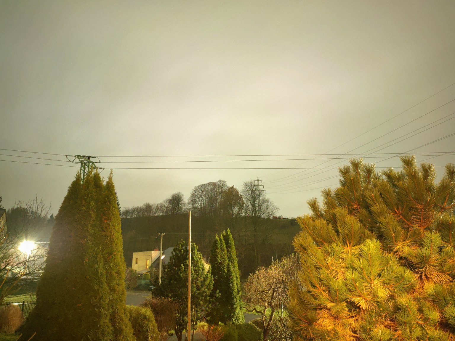 3,8°C, Velmi slabý dešť, Sníh: 0 cm. V noci prý fest lilo. I když je to špatně vidět, tak na Kozubové je 1. sněhová pokrývka této zimy.
