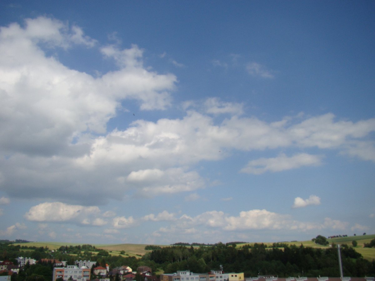 Požár nad Plzní, na obloze kupovitá oblačnost