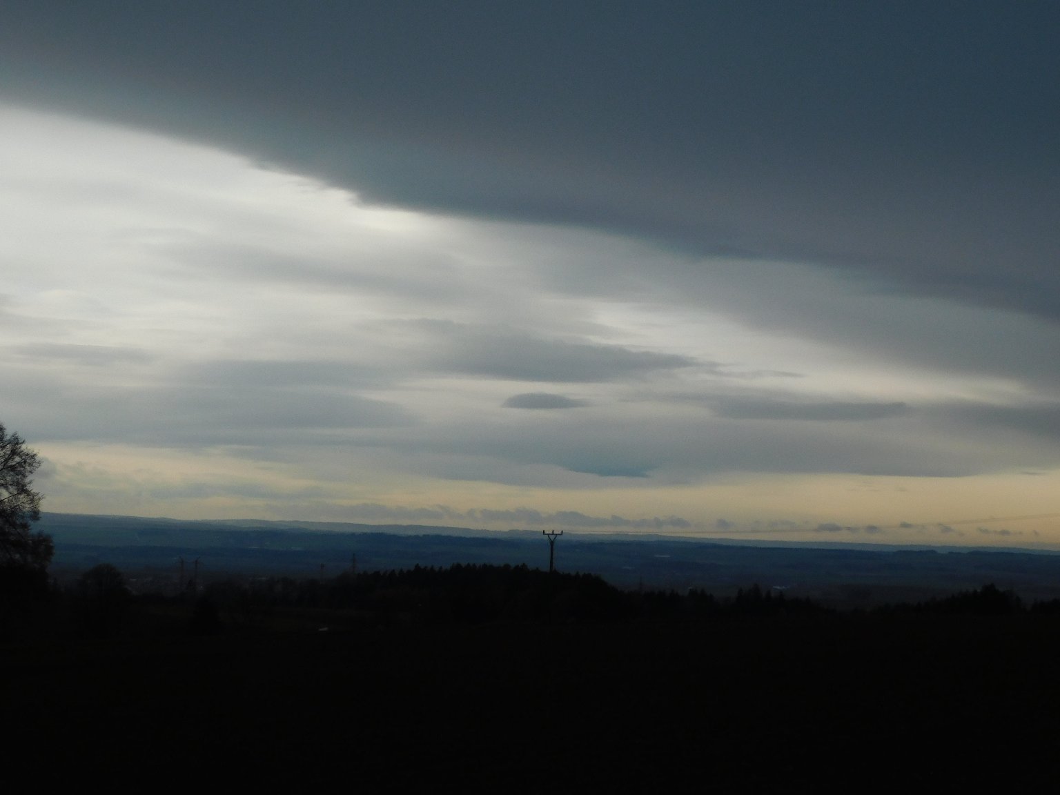 Skoro zataženo. Mírný déšť pomalu ustal. Vlhkost 86%. Tlak 1002 hPa. Slabý vítr jižních směrů.