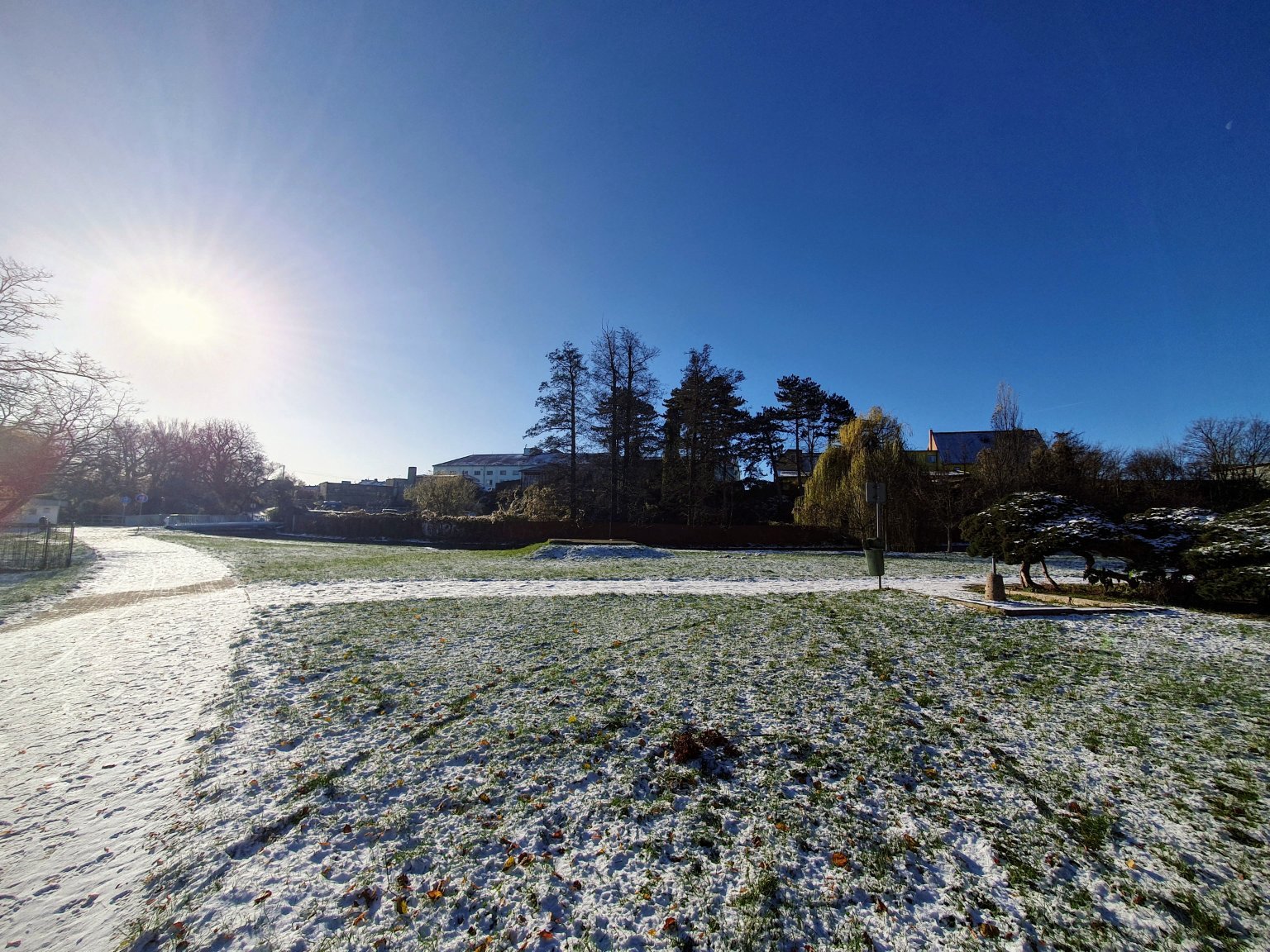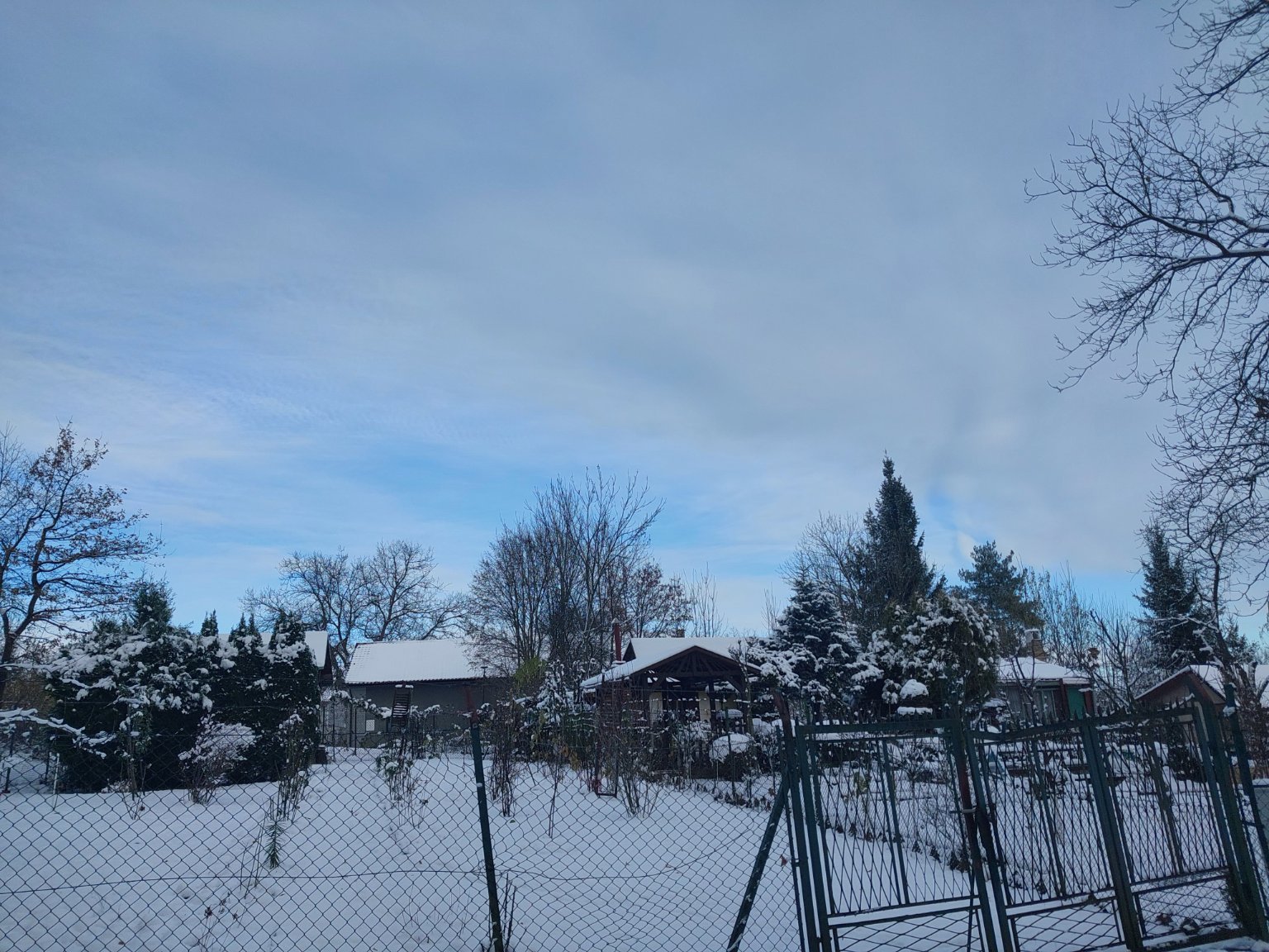 0,8°C, Oblačno, Sníh: 15 cm. Už je nad nulou... :-/ Cesta pod kopcem je zafoukana sněhem, klidně mohla být vydána výstraha na sněhové jazyky, bo dneska jsou na ně dobré podmínky...